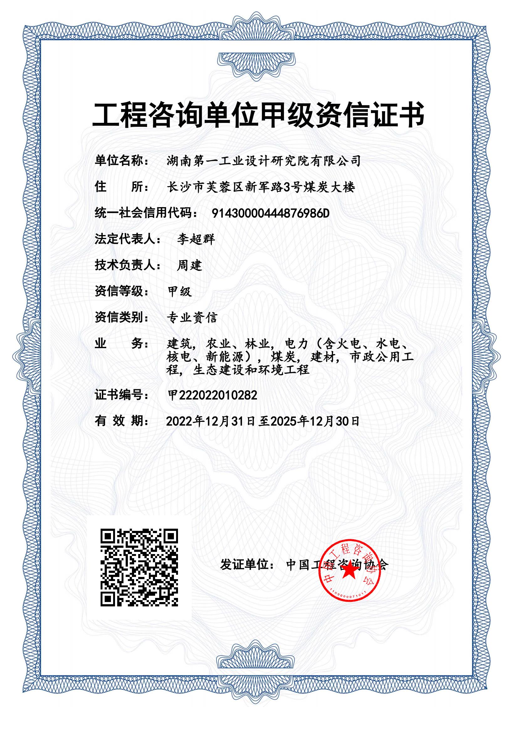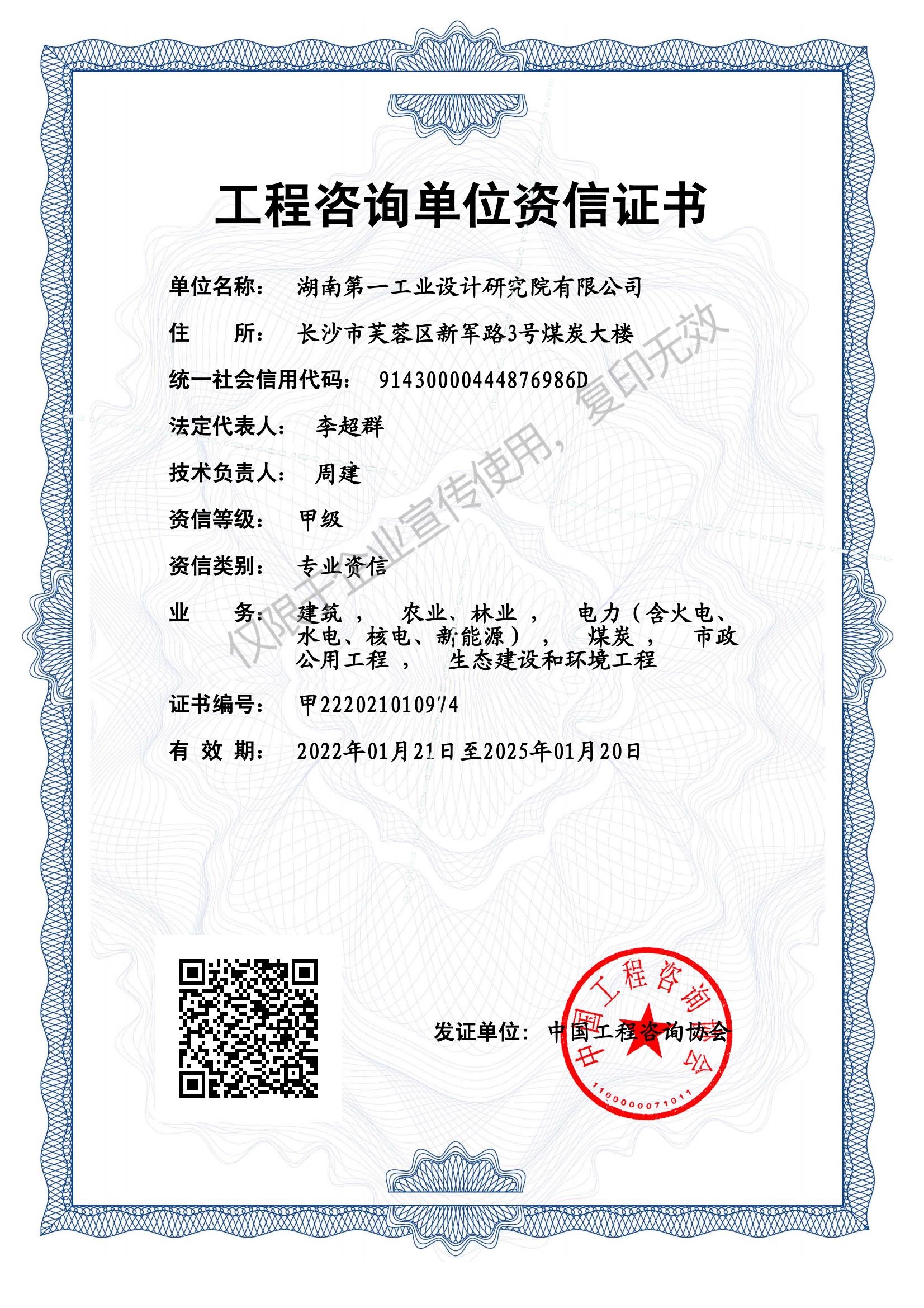 工程設(shè)計(jì)乙級(jí)資質(zhì)證書(shū)