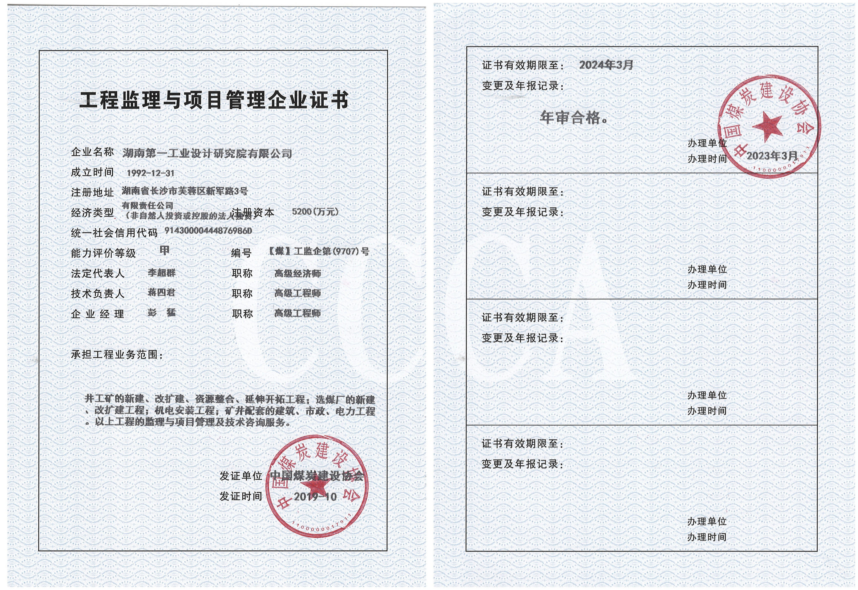 工程監(jiān)理與項(xiàng)目管理企業(yè)證書(shū)